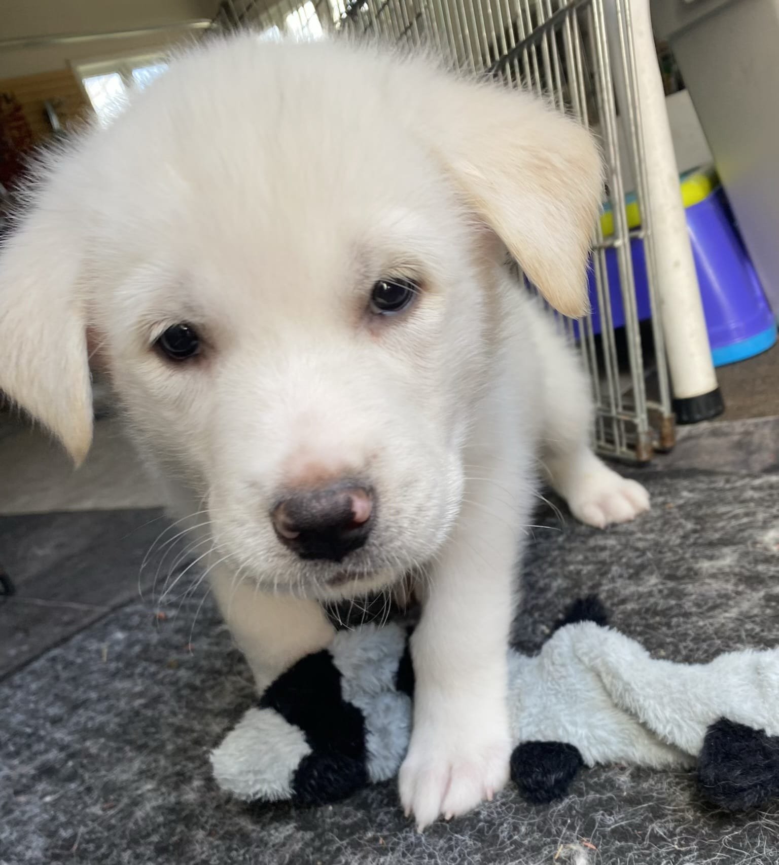 Their mom, Avalanche, came into care terrified, heavily pregnant, and unsure of people after a stressful rescue. With time, patience, and calm support, she slowly began to trust again. Before her planned transport to a whelper in BC, she surprised everyone by giving birth to nine healthy puppies.