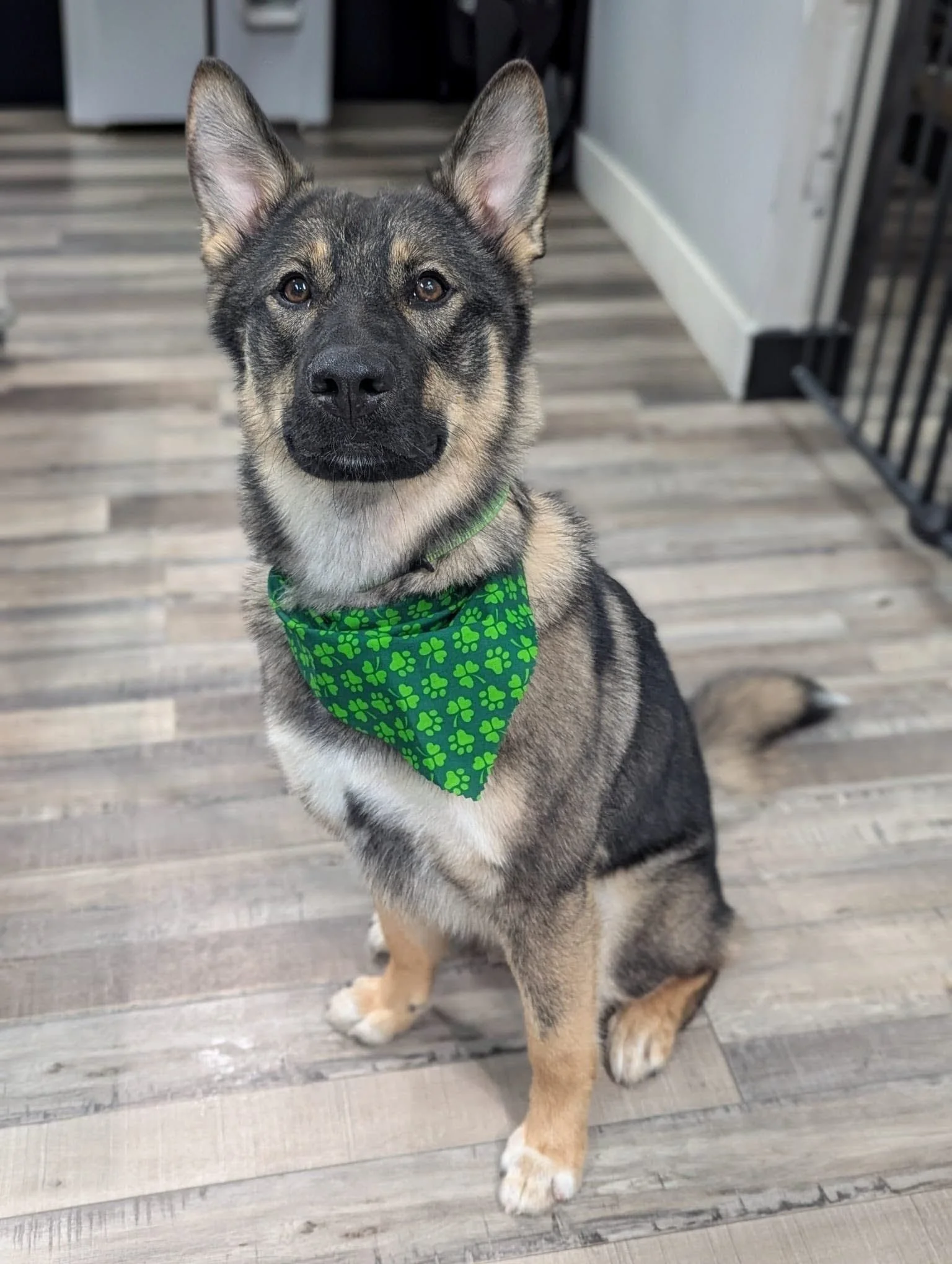 Kosmo is very food motivated and already knows several commands including sit, paw, and down. Because he loves food so much, he sometimes checks for treats first before responding to commands, but this also makes him a great candidate for continued training.