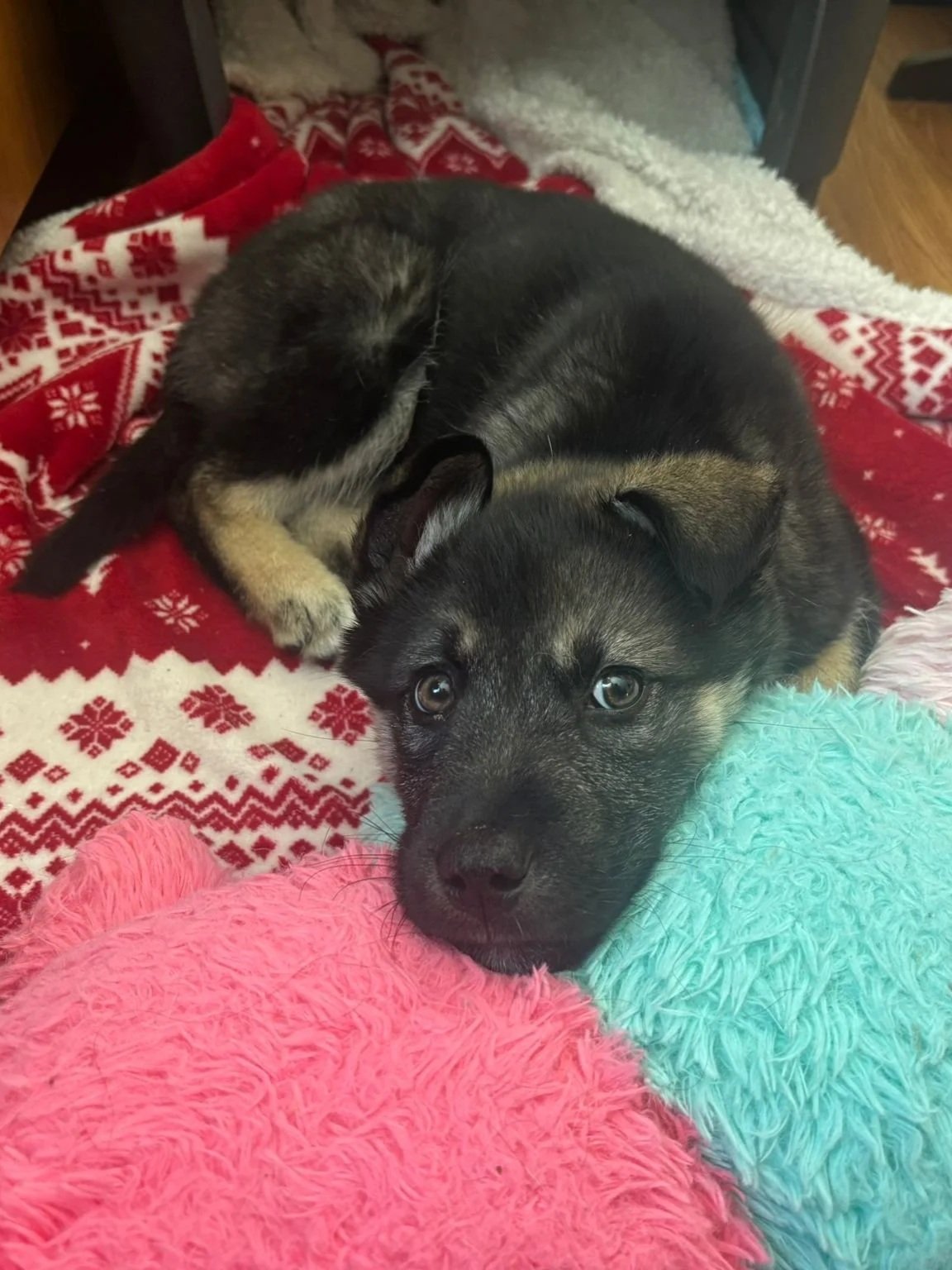 He enjoys human company, seeks affection, and is happy to be close, but he can also settle and nap independently. Like all young puppies, he is currently in a chewing/teething phase and will benefit from guidance, structure, and consistent training.